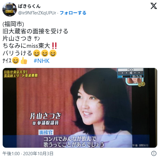 2025年10月高市政権が発足し財務大臣として入閣した片山さつきさん。