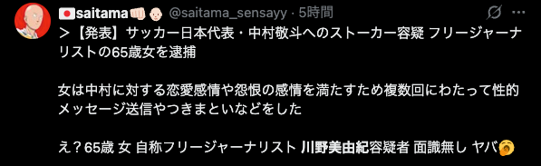 ダイレクトメッセージ機能を使って複数回、好意を伝えたり、性的な関係を要求したりするメッセージを送ったとしている。