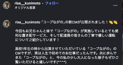 「コープながの」CMでデビュー