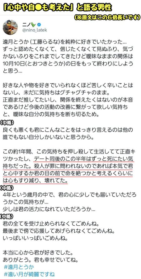 ファンの心を踏み躙る行為となりましたが 本遠月とうか 本人からの発表がないため